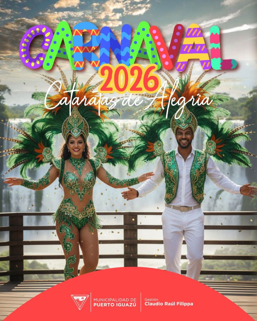 Iguazú se prepara para el Carnaval 2026 “Cataratas de Alegría”, que se celebrará los días 13, 14 y 15 de febrero en la costanera Eduardo Arrabal, transformando este espacio en un punto de encuentro lleno de música y alegría. Las comparsas San José, Yaguareté, Banda Norte y Batuke serán protagonistas